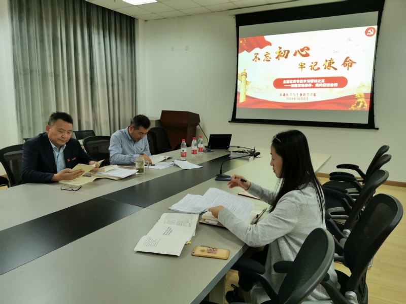 10月9日上午,学院领导班子在学院3119会议室开展了“加强加强党性修养、保持廉洁自律”专题集中学习研讨。张洪涛诵读了领学了《坚决反对形式主义、官僚主义——毛泽东同志等老一辈革命家的部分论述》;《习近平关于“不忘初心、牢记使命”论述摘编》第七章“勇于自我革命,同一切影响党的先进性、弱化党的纯洁性的问题作坚决斗争”、第八章“坚决整治形式主义、官僚主义,加强真抓实干的作风建设”等章节内容。杨雪珍围绕党性修养、廉洁自律专题作重点发言,其他与会人员结合工作实际进行了自由发言。