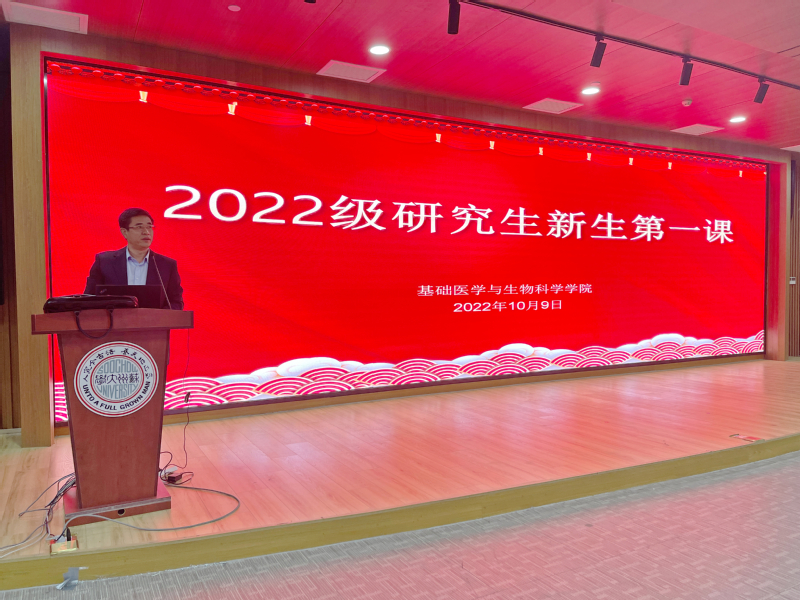 10月9日上午,我院2022级研究生新生“开学第一课”在医学楼四楼学术报告厅举行。学院党委书记何峰和副院长张洪涛主讲,研究生秘书、研究生辅导员及2022级研究生新生共同参加了活动。