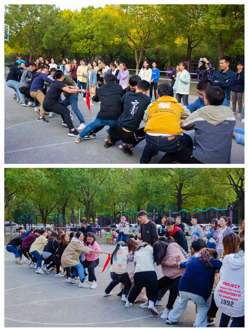 进入积分游戏,同学们依次报号分组,老师们随机加入,按组竞赛。“背对背拥抱”,“凌波微步”,“螃蟹走”以及最后的友谊赛“拔河”,每个项目都充分展现了大家的团队协作能力,既考验了大家的体力,又体现了大家的合作意识。下午五时许,本次活动圆满结束,大家亲切地聚拢在一起拍照留念,有序离场。