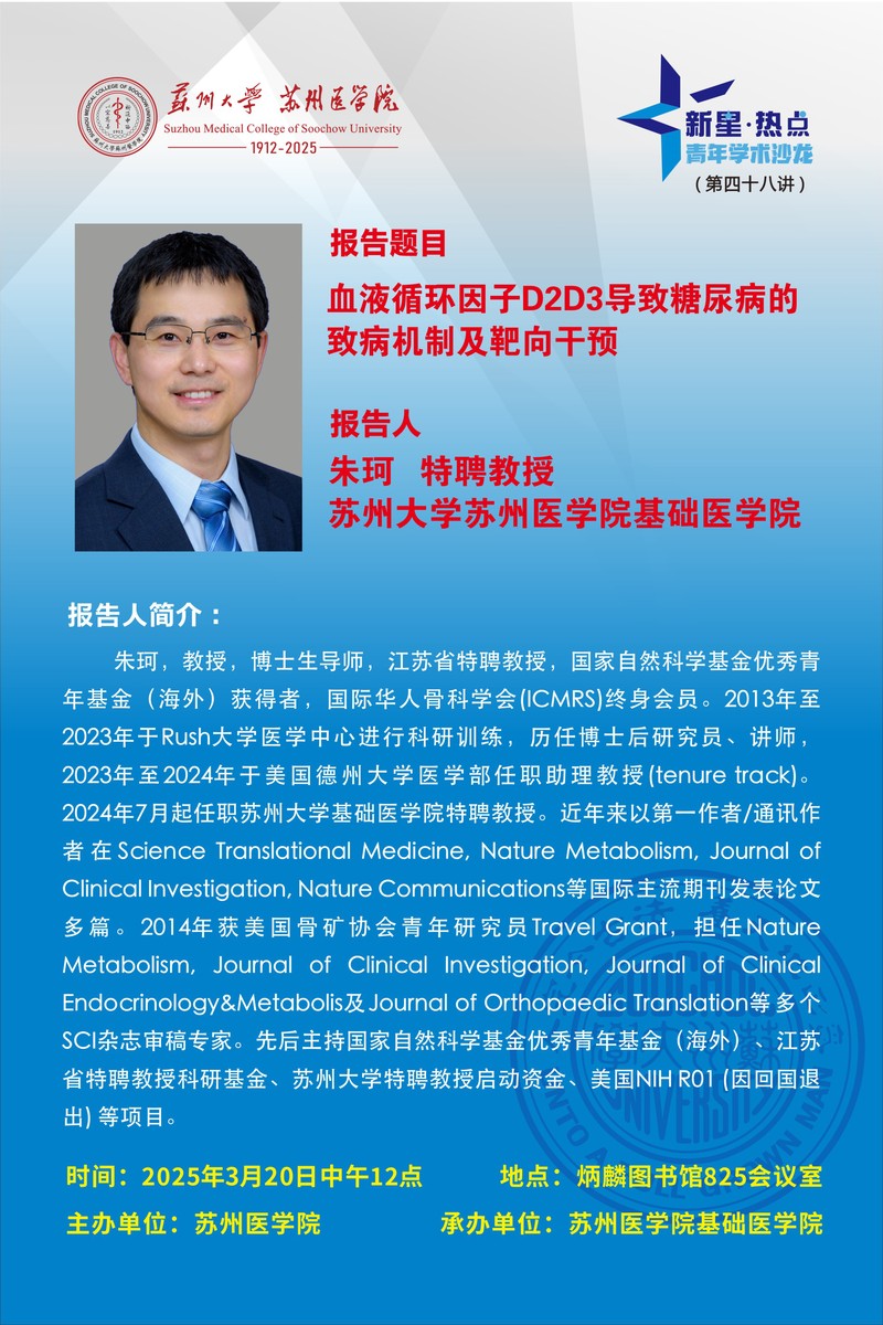 青年学术沙龙:血液循环因子D2D3导致糖尿病的致病机制及靶向干预