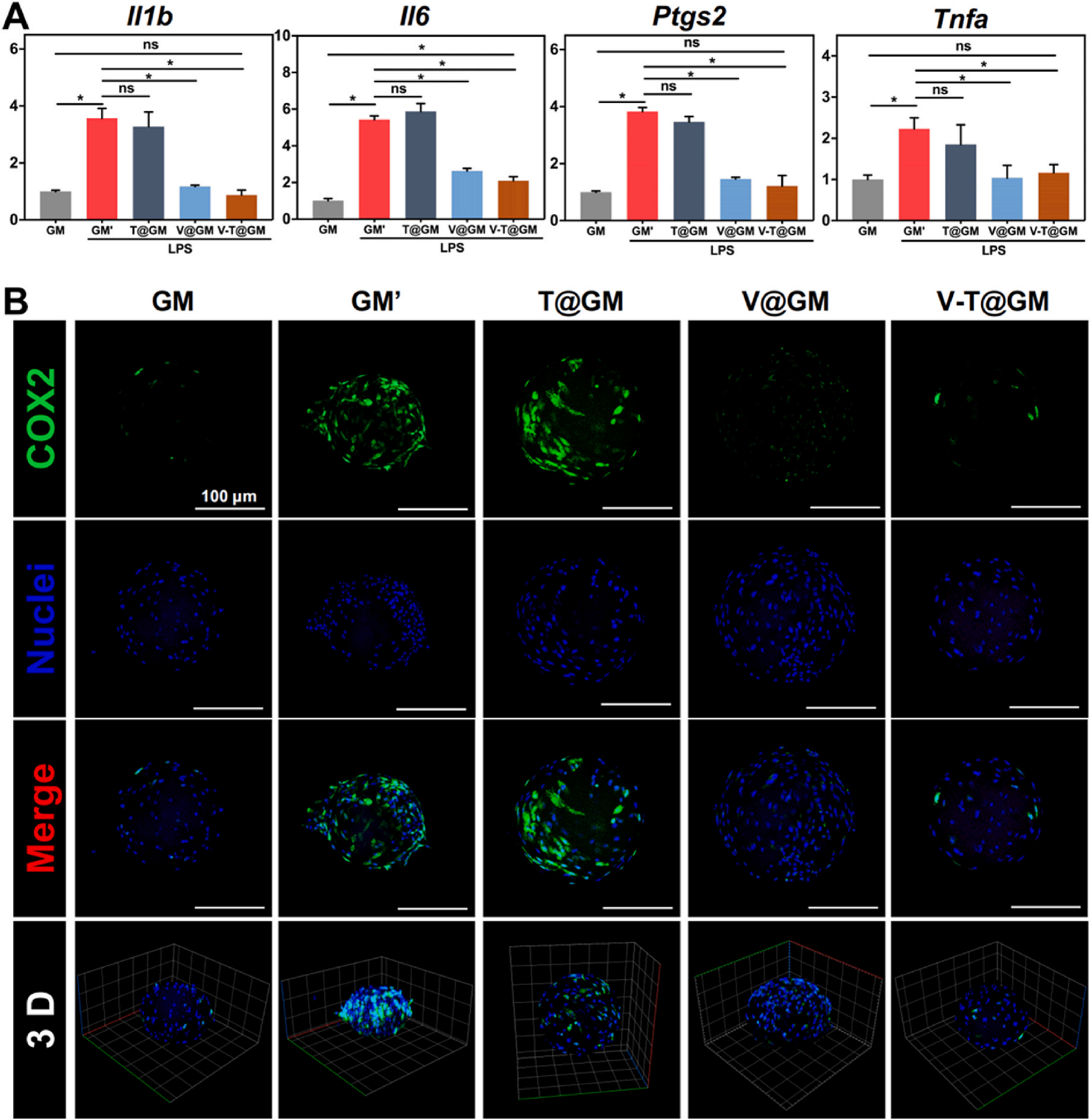 图4:Vanillin功能化递送平台抑制LPS诱导的NPC炎症反应。