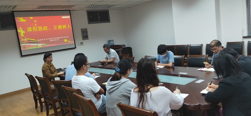 接着,党支部书记吴萍传达了学校教务部暑期思政课程培训的主要内容,她从课程思政是贯彻国家教育方针的时代要求、课程思政的价值与内涵、推进课程思政工作的路径选择等三个方面对课程思政进行了讲解。课程思政,实质是实现立德与树人、育人与育才的有机结合;也是实现各类课程隐性教育与思想政治理论课显性教育的有机结合;同时又是实现专业课程教师队伍与思想政治理论课教师队伍的有机结合,最终形成全员育人的格局。课程思政建设,就是要寓价值观引导于知识传授和能力培养之中,帮助学生塑造正确的世界观、人生观、价值观,这是人才培养的应有之义,更是必备内容。