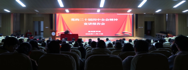 11月19日,基础医学院召开党的二十届四中全会精神宣讲报告会,邀请校党委宣讲团成员,校党委常委、副校长姚建林作专题宣讲报告。学院领导班子成员、全体教职工和研究生到场聆听。会议由学院党委书记王建凯主持。