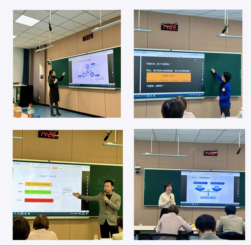 朱永进、季成、许静等7位资深教师,分别分享了 AI 在个性化作业设计、课堂数据化反馈中等教学中的应用,以及交流项目式学习、跨学科融合等教学方法。教学竞赛过程引起了观摩老师的热烈反响,自由讨论环节氛围热烈。