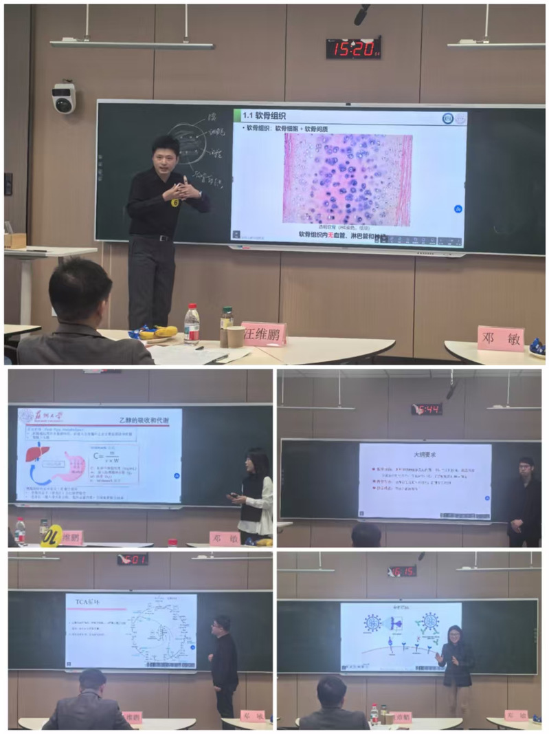 代馥虹等7位教龄大于五年的老师参加经验教师组教学比赛。他们以医学基础理论为切入点,通过案例解读、实验演示等通俗易懂的手段解析医学知识难点。评委从多维度给予高度评价,肯定他们在课程教学创新、学科交叉等方面的探索。