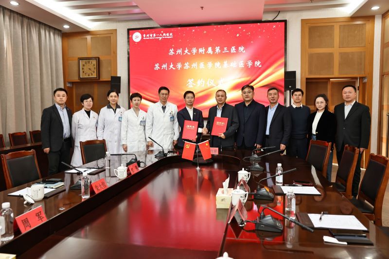 为了进一步落实苏州大学苏州医学院“五大发展理念”和“四个转向”的发展路径,进一步强化校地、医教和医研协同,打通基础研究与临床实践,近日,我院与苏州大学附属第三医院(简称:附三院)签署合作协议,开启学院与医院的“院院合作、协同发展”新篇章。
