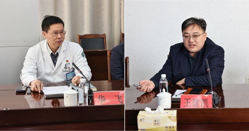 华飞对基础医学院王建凯书记一行的到来表示热烈欢迎。他详细介绍了附三院的基本概况和发展历程,重点讲述了医院在临床诊疗、学科发展、人才建设、科研教学等方面的扎实基础与突出优势,以及近年来依托人工智能赋能医疗高质量发展的实践举措。同时,表达了对双方协同发展、更上台阶的期待。