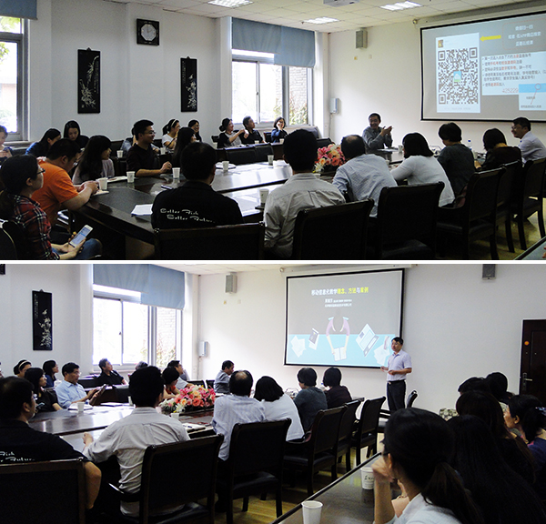 2016年6月7日下午我院教师成长中心在3119会议室举办活动,邀请北京智启蓝墨信息技术有限公司原继东副总裁做了《移动信息化教学理念、方法与案例》的报告。会议由我院戈志强副院长主持,公共卫生学院张增利副院长、医学部其他学院教师及我院教师50多人参加活动。
