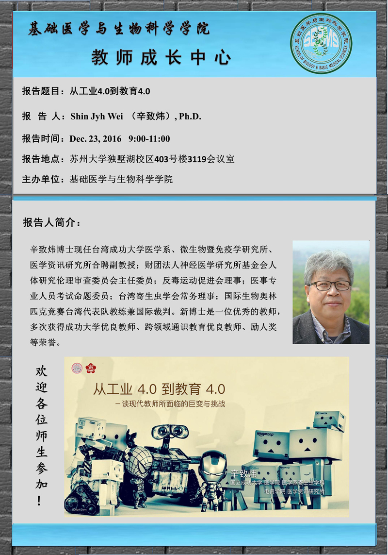基础医学与生物科学学院教师成长中心活动【2016年12月23日 9:00 独墅湖校区403-3119会议室】