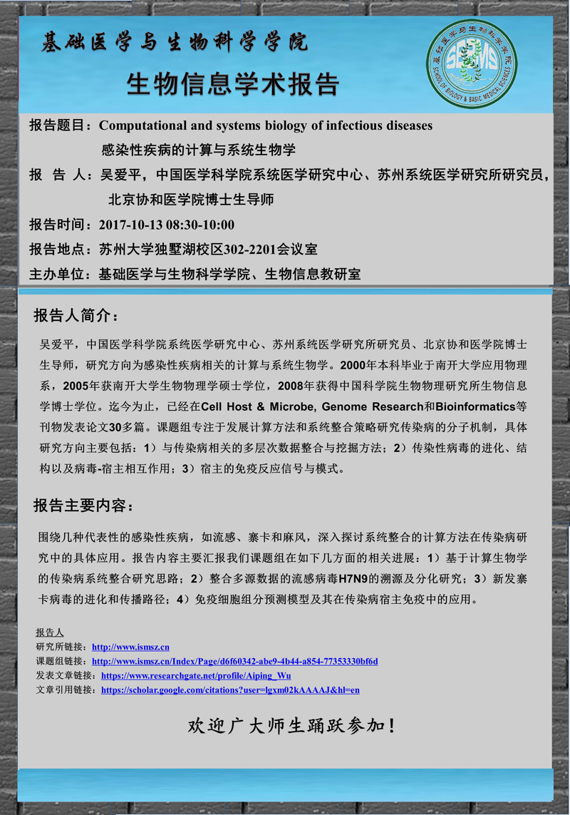 生物信息学术报告:Computational and systems biology of infectious diseases