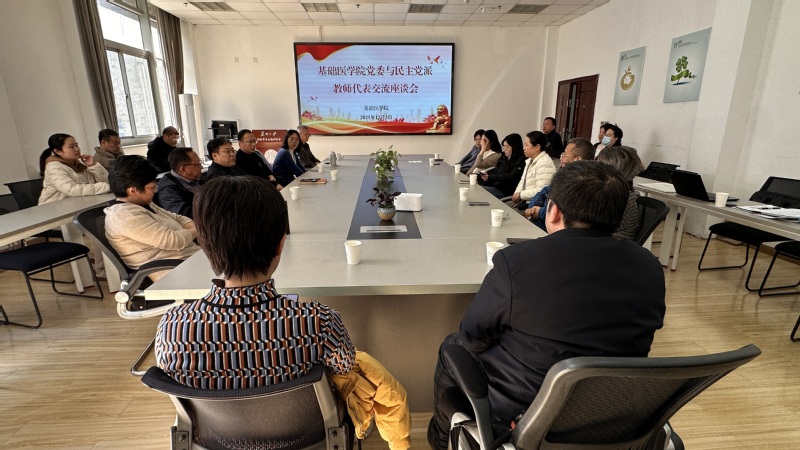 为深入学习贯彻党的二十届四中全会精神,搭建党组织与民主党派教师的常态化沟通桥梁,凝聚推动学院高质量发展的统战合力,12月3日,基础医学院召开民主党派教师代表交流座谈会。学院领导班子成员、党委委员、各党支部书记、支部委员与民主党派教师代表齐聚一堂,在轻松融洽的氛围中畅所欲言、共商发展。会议由学院党委书记王建凯主持。