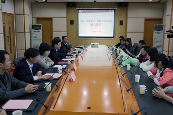 邱蕴芳表示“很高兴也很激动能来参加基金成立仪式,帮助贫困学生一直是家桢的心愿,自己只是尽一份绵薄力量。苏州大学把这份基金变成了长久项目,在基础医学与生物科学学院募款进一步充实基金,来关心帮助更多困难学生,令人感动。希望同学们能继承家桢的遗志,努力学习,今后为国家贡献出更多力量。”