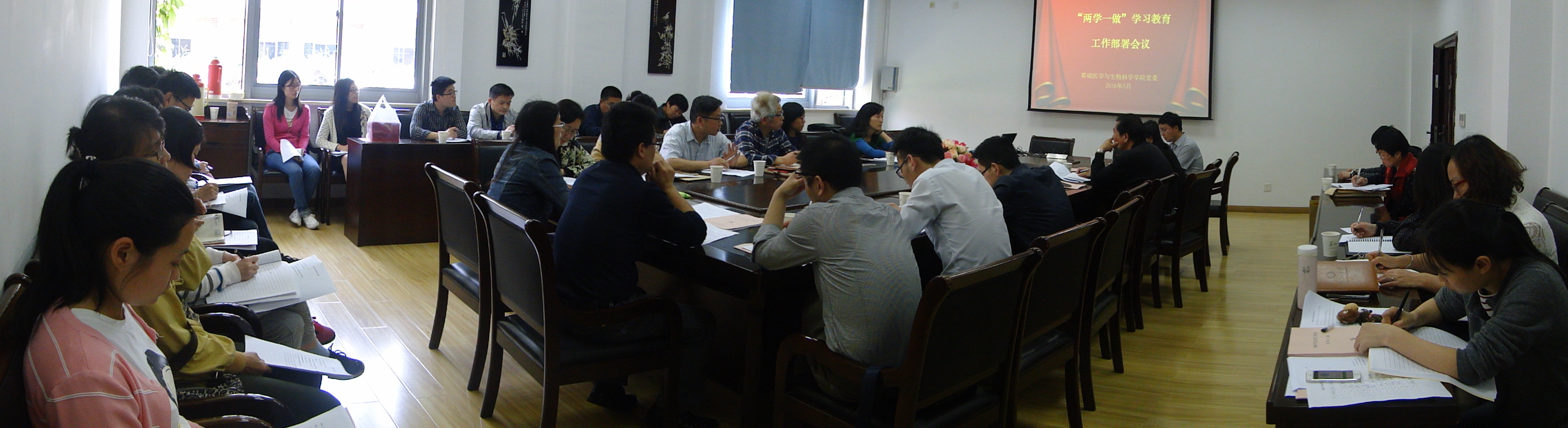 为了进一步坚定理想信念,加强党的思想政治建设,全面贯彻落实中央、省委部署,以尊崇党章、遵守党规为基本要求,5月16日我院根据上级党委指示开展了“两学一做”学习教育工作部署会议,学院党委委员、全体支部书记、支部委员出席会议。