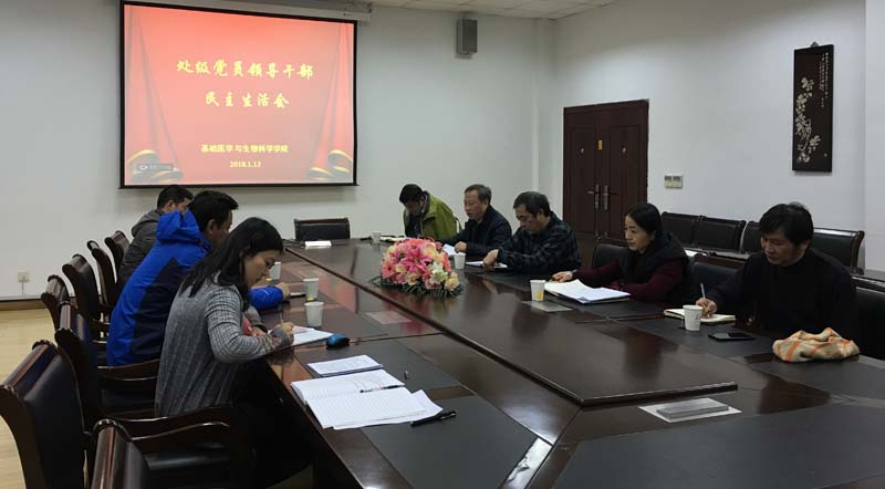 1月13日下午,我院党委召开2017年度处级党员领导干部民主生活会,学院党委书记薛辉,院长高晓明,副院长戈志强、杨雪珍以及党委委员参加了会议,会议由薛辉主持。