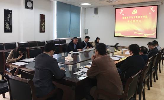 4月17日下午1:30,基础医学与生物科学学院党委在3119会议室召开了中心组理论学习活动,本次理论学习的主题是:党的十九大有关意识形态工作方面的精神和决策部署专题学习以及党的十九大关于全面从严治党的战略部署专题学习。会议由党委书记沈学伍主持,学院领导班子成员、学院党委委员等中心组成员参加了本次活动。