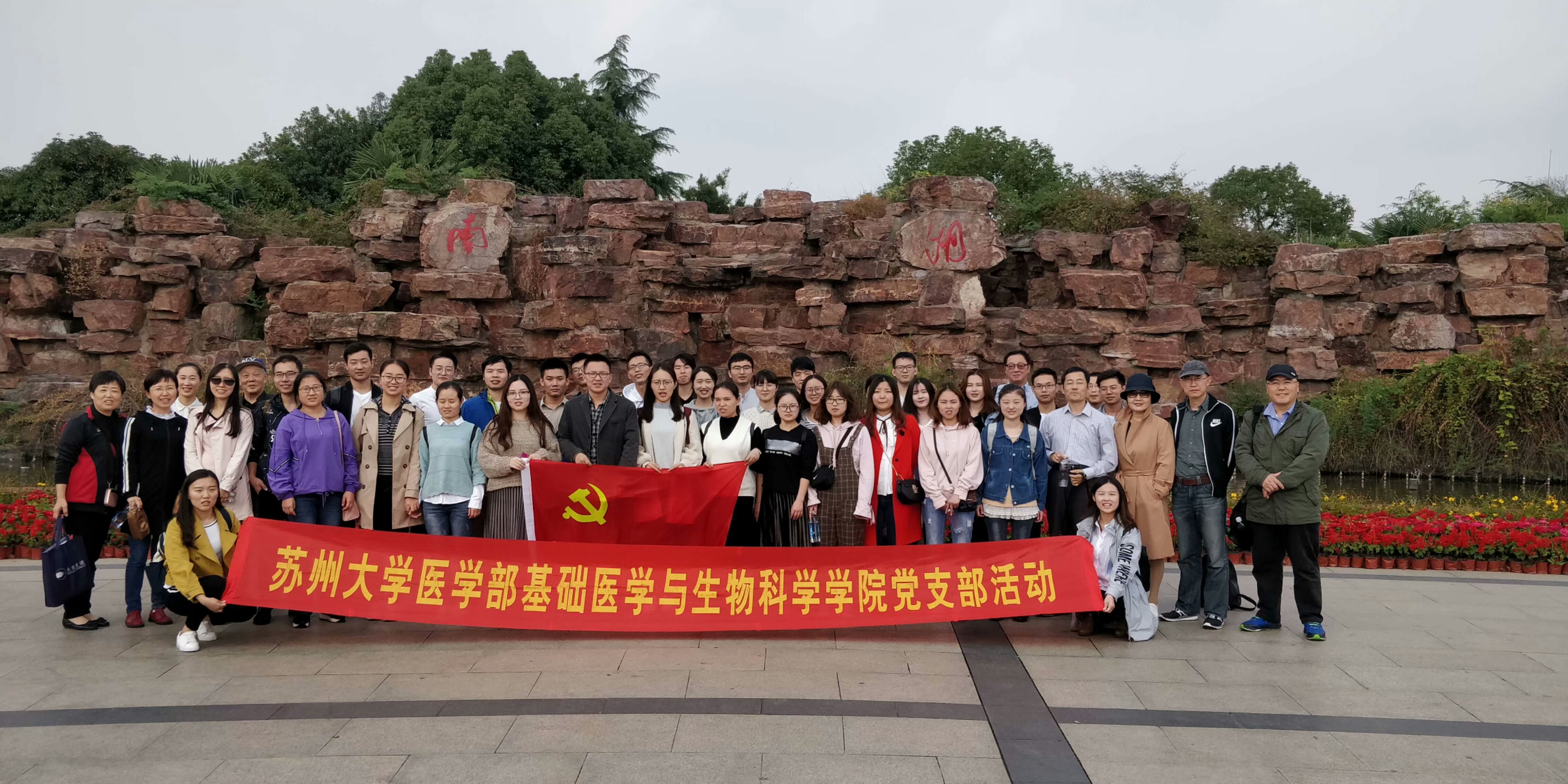 金秋十月,丹桂飘香,苏州大学基础医学与生物科学学院细胞生物学系党支部与生理神经生物学系党支部于2018年10月26日共同举办了以“传承红船精神,勇立时代潮头”为主题的党日活动。2 个支部的教师党员、研究生党员、入党积极分子、递交入党申请书的研究生们共计44位参加了本次活动。通过唱红歌、瞻仰嘉兴南湖中共一大纪念船、参观南湖革命纪念馆、开展党课培训、读书分享、集体诗朗诵、老师寄语青年学生等不同形式的活动,全体参与者纷纷感慨此次活动受益匪浅。