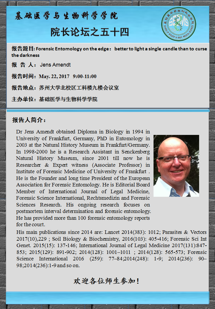 院长论坛之五十四: Forensic Entomology on the edge: Better to Light a Singal Candle than to Curse the Darkness