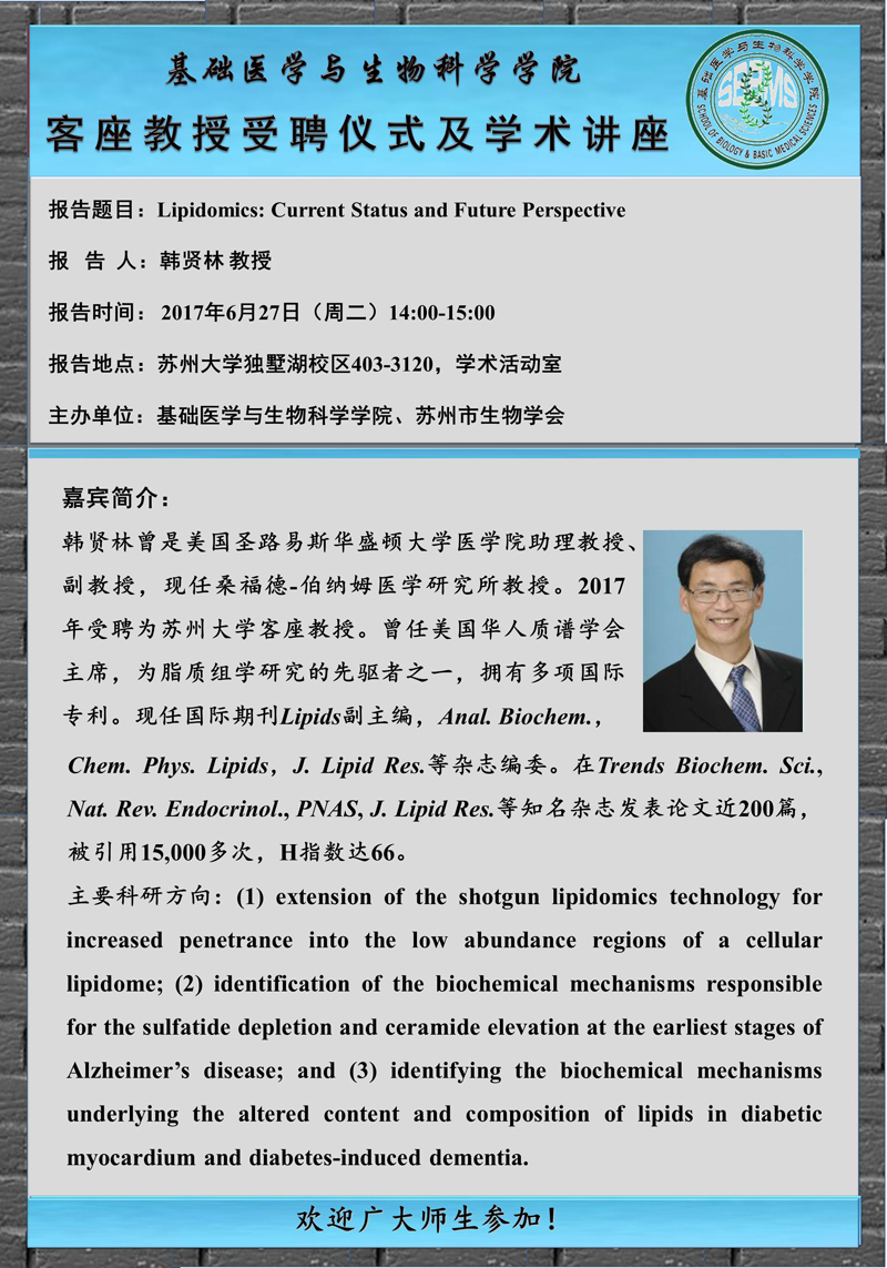 客座教授授聘仪式及学术讲座:Lipidomics: Current Status and Future Perspective