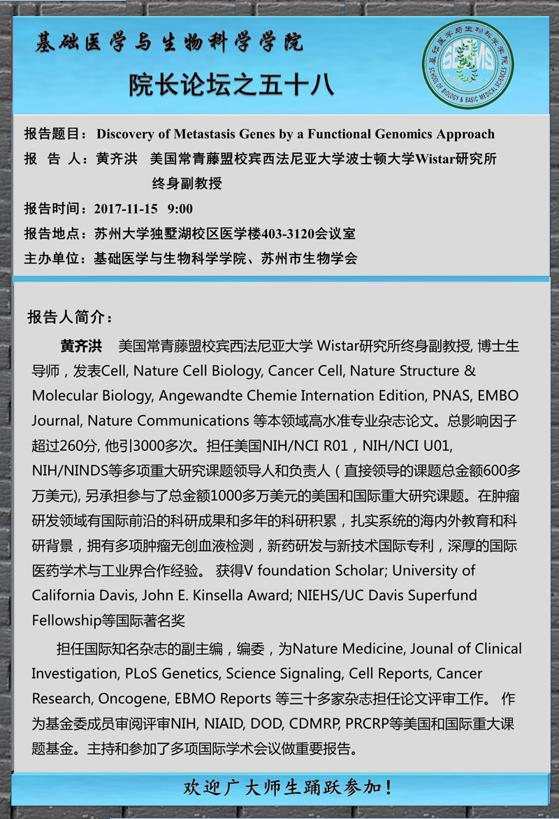 院长论坛之五十八:Discovery of Metastasis Gnenes by a Functional Genomics Approach