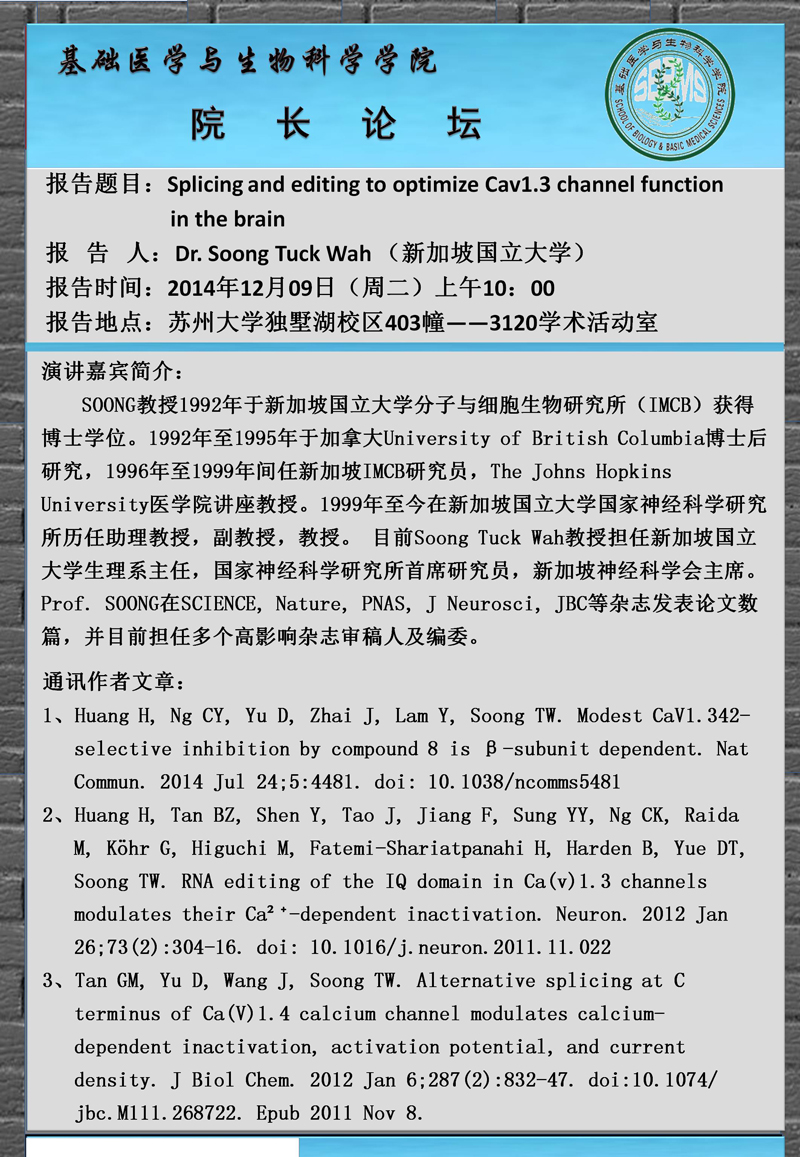 院长论坛之三十三:Splicing and editing to optimize Cav1.3 channel function in the brain