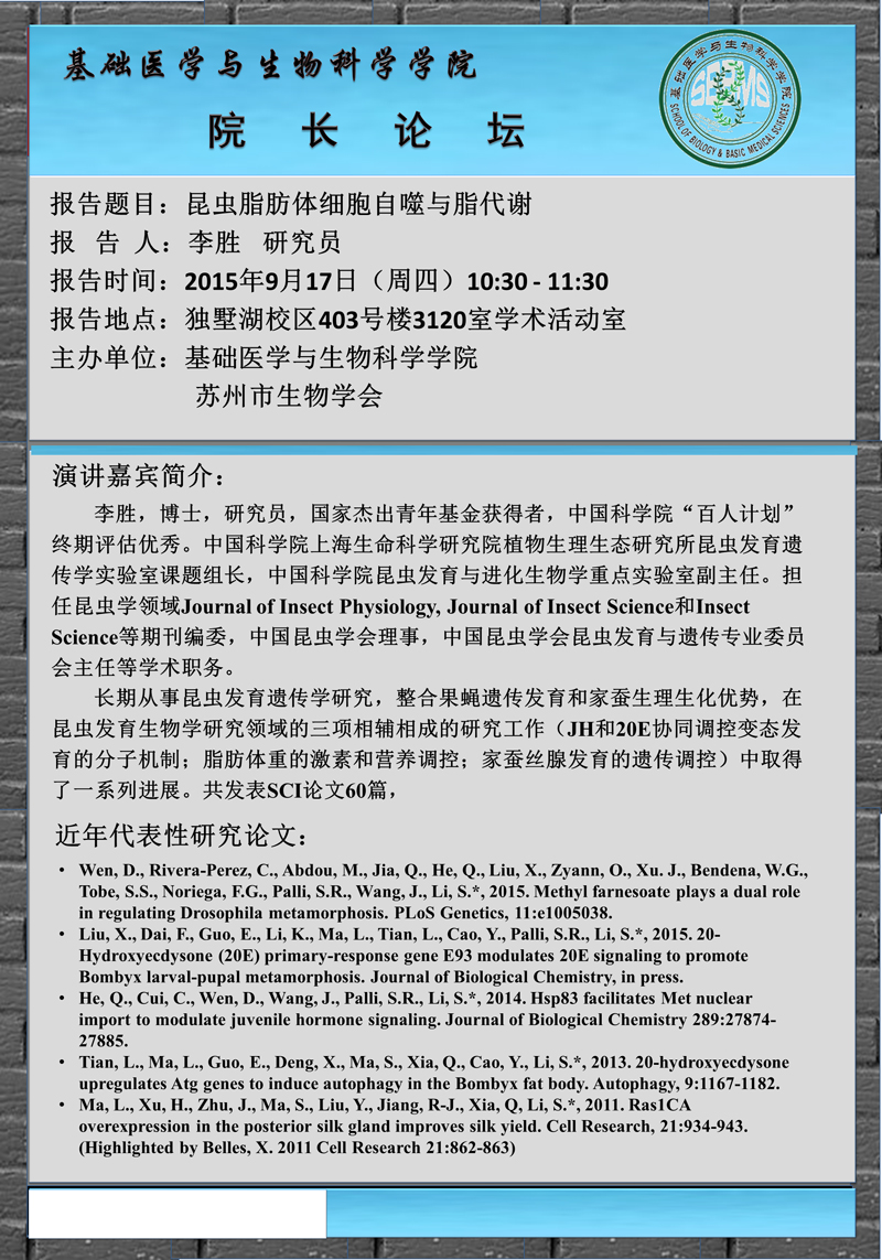 院长论坛:昆虫脂肪体细胞自噬与脂代谢