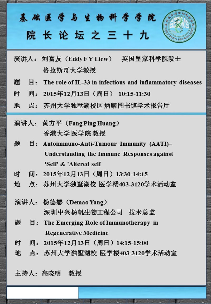 院长论坛之三十九The role of IL-33 in infectious and inflammatory diseases