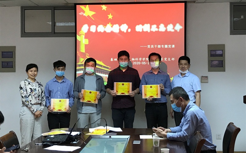 党日活动最后,由支部书记和党委委员为党建知识竞赛中成绩突出的同志发放奖状,予以鼓励。在疫情防控时期,为进一步加强党员干部和全体党员的责任意识,夯实工作作风,坚定理想信念,增强学习的主动性和自觉性,本支部于3月11日进行了“学条例、防疫情,聚力量、克时艰”为主题的线上党建知识竞赛。季成、仲兆民、雷哲、檀小辉、靳二锁等五位同志荣获竞赛一等奖。