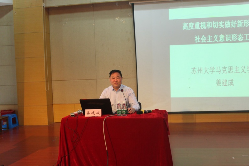 为深入贯彻落实党中央、省委关于加强和改进新形势下高校思想政治工作的要求,以及校党委关于加强意识形态工作的指示精神,推进意识形态工作,5月15日下午,马克思主义学院姜建成教授为学部全体教职工和学生党员代表做专题报告,我院党政领导班子、党委委员、学系主任、支部书记、全体教授、副教授参加会议听取报告。