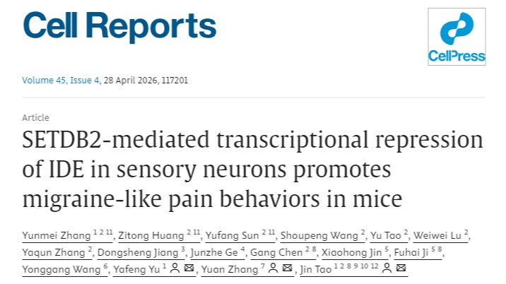 Cell Rep丨陶金团队揭示偏头痛慢性化的表观调控新机制